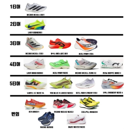 こういったランニングシューズに対する関心の高まりにより、SNSや口コミを通じて情報収集する文化が定着しており、ランナーの間では「ランニングシューズの階級図(ランキングチャート)」が非常に拡散されています。