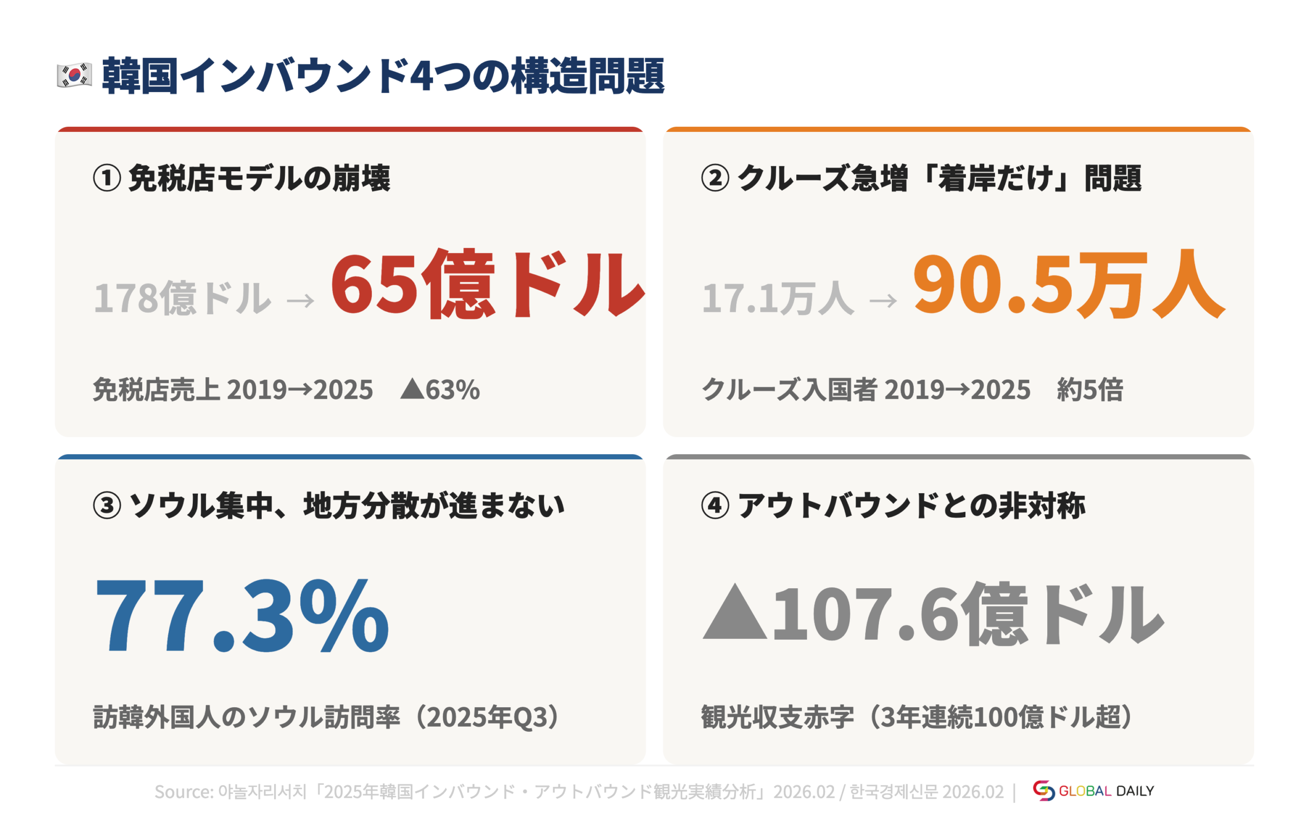 - ヤノルジャリサーチ「2025年 韓国インバウンド・アウトバウンド観光実績分析」(2026年2月)