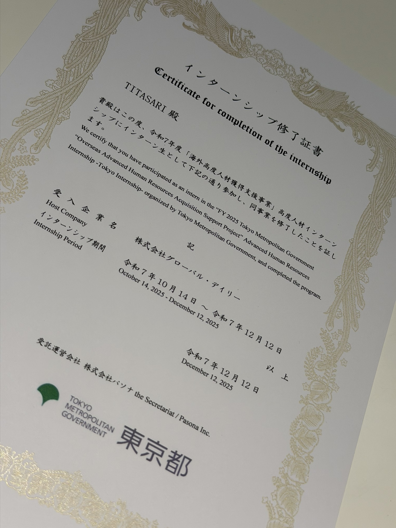 東京都が実施する「令和7年度『海外高度人材インターンシップ』」において、グローバル・デイリーが、インターン受入企業として名乗りを上げ、インターンシップ受け入れ企業として選定されました。このプログラムは、外国人採用に意欲的な企業と、日本での就労を希望する外国人材に対し、インターンシップの機会を提供しています。