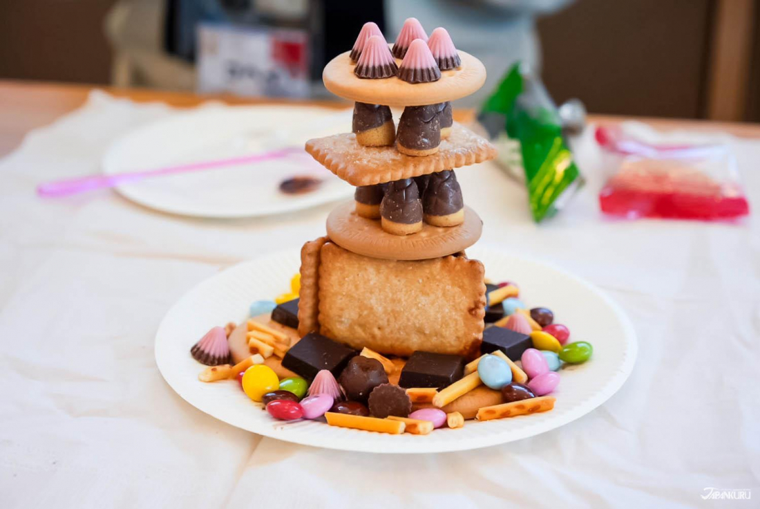 参加者の皆さんにランダムでペアになっていただき、お菓子でお城を作っていただきました。